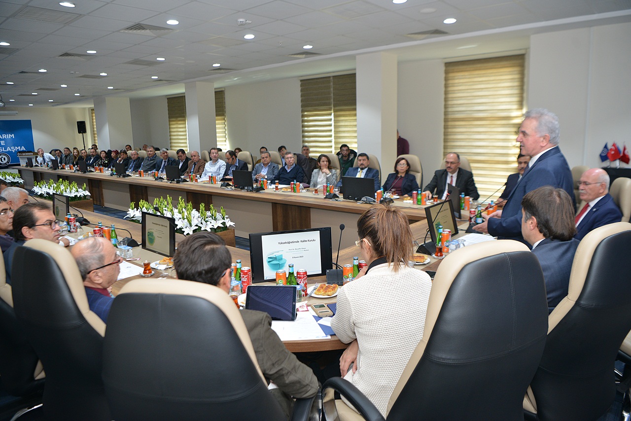 Uşak Üniversitesi Kalite Koordinatörlüğü tarafından, üniversite kalite çalışmalarının aktarıldığı “Bütünleşik Kalite Yaklaşımı” toplantısı gerçekleştirildi. Recep Tayyip Erdoğan Kültür ve Kongre Merkezi Senato salonunda düzenlenen toplantıya, Yükseköğretim Kalite Kurulu Başkanı Prof. Dr. Muzaffer Elmas, Uşak Üniversitesi Rektörü Prof. Dr. Ekrem Savaş, Rektör Yardımcıları Prof. Dr. Metin Gümüş, Prof. Dr. Adem Duru, senatörler ve akademisyenler katıldı.