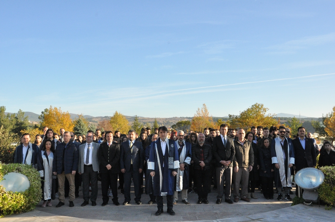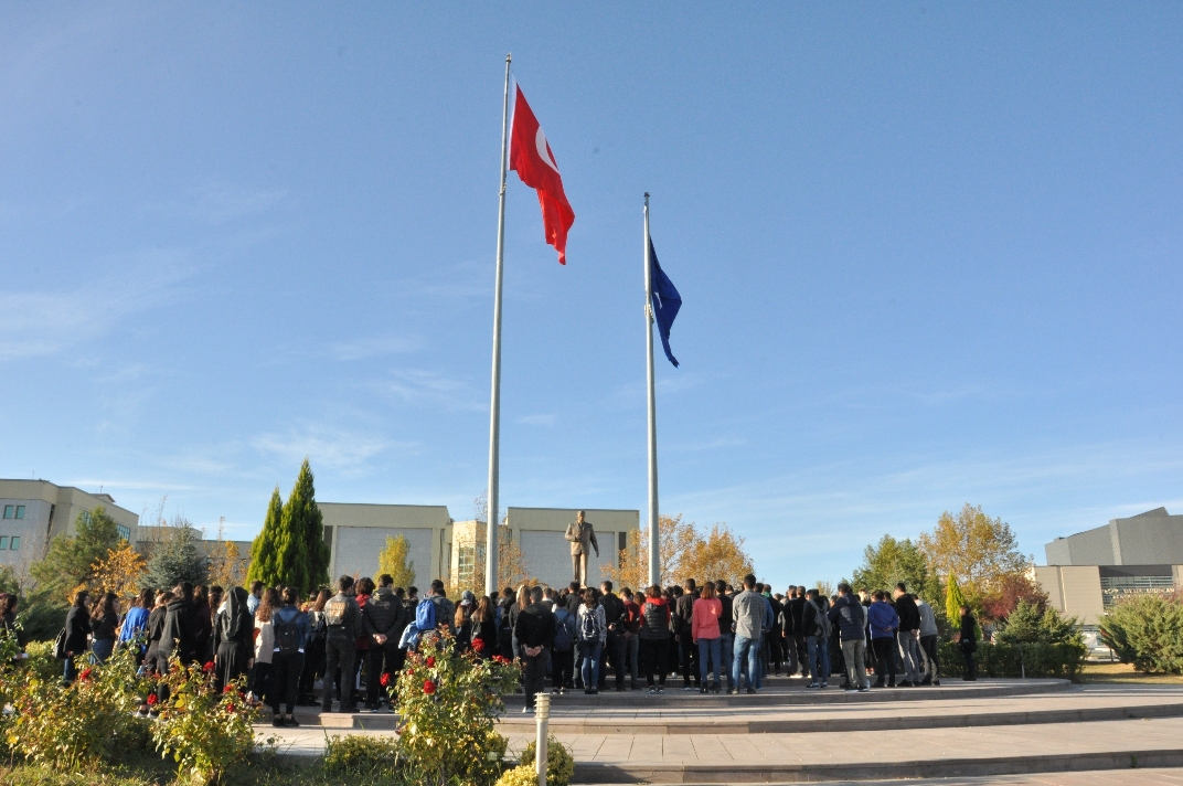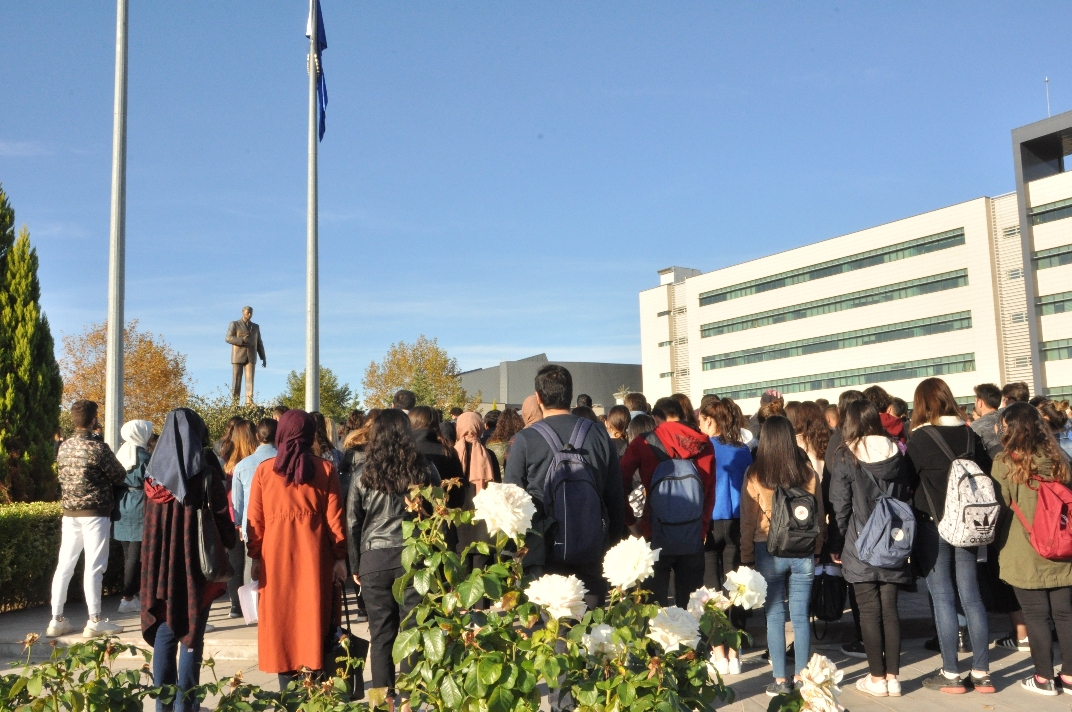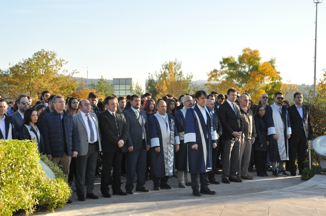Rektör Yardımcısı Prof. Dr. Metin Gümüş’ün Atatürk Anıtı’na çelenk sunmasıyla başlayan tören Saygı Duruşu ve İstiklal Marşı’nın okunmasının ardından sona erdi.