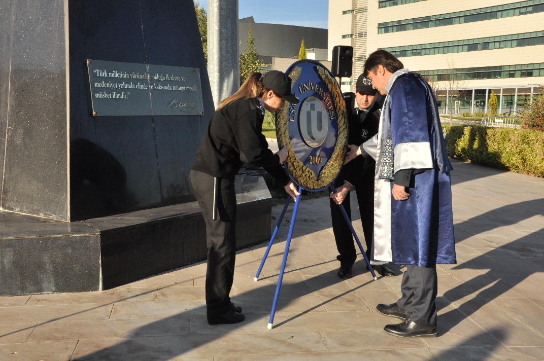 10 Kasım Atatürk’ü Anma Günü dolayısıyla etkinlik Uşak Üniversitesi Atatürk Anıtı önünde yapıldı. Çelenk Sunma törenine Rektör Yardımcısı Prof. Dr. Metin Gümüş, Genel Sekreter İbrahim Çalış, akademik ve idari personelin yanı sıra öğrenciler katıldı.