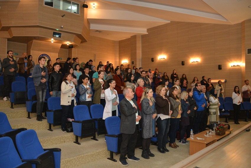 Mustafa Kemal Paşa Amfisinde gerçekleşen konferansa Sağlık Yüksekokulu Müdürü Prof. Dr. Kadir Özcan, İletişim Fakültesi Dekanı Prof. Dr. Murat Mustafa Öntuğ, İktisadi ve İdari Bilimler Fakültesi Dekanı Prof. Dr. Sadiye Tutsak, Sağlık Hizmetleri Eğitim Uygulama ve Araştırma Merkez Müdürü Öğr. Gör. Halime Kaçar, akademisyenler ve öğrenciler katıldı.