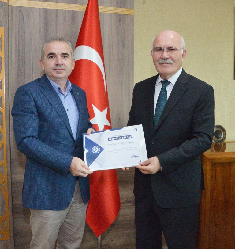 Uşak Üniversitesi Rektörü Prof. Dr. Ekrem Savaş, görevlerini başarıyla ifa eden Prof. Dr. Karayaman’a ve Dr. Öğr. Üyesi Çolak’a teşekkür belgesi takdim ederek, bugüne kadar yaptıkları çalışmalardan dolayı teşekkür etti.
