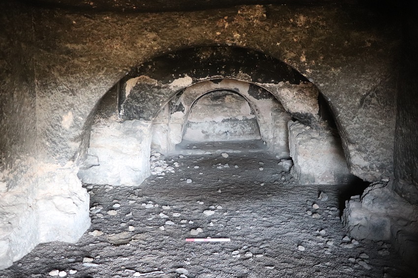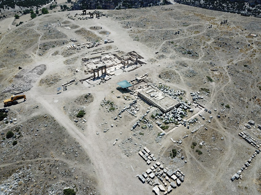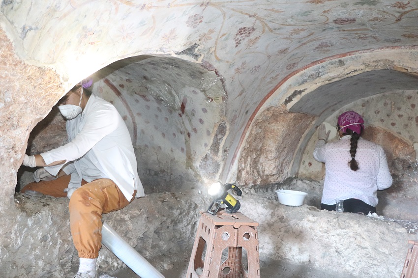Geçtiğimiz Haziran ayından itibaren sürdürülen 2021 sezonu çalışmalarında, bir yandan kentin merkezinde yer alan Ceres (Demeter) tapınağının kazıları devam ederken, bir yandan da nekropol alanlarında tespit ve belgeleme çalışmaları sürdürüldüğünü belirten Prof. Dr. Birol Can yapılar çalışmalar hakkında bilgi verdi. Demeter kutsal alanının anıtsal giriş kapısının tamamen açığa çıkarıldığını, tapınağın büyük bölümü kazılarak yapıya ait bezemeli mermer blokların tasnifinin devam ettiğini belirten Can, “Bu çalışmaların da kısa zamanda tamamlanarak bu yapıların ayağa kaldırılması için projeler hayata geçirilecektir. 2021 sezonunda çalışılan diğer bir alan olan nekropolde de önemli tespitler yapılmıştır. Bir tepe üzerine kurulu Blaundos kentini her yönde çevreleyen derin kanyonun yamaçlarında çok sayıda kaya mezarı görülür. Teraslar halinde sıralanan yüzlerce kaya mezarı, her ne kadar zaman içinde tahribata uğramışsa da planları, donanımları ve özellikle bazılarının duvarlarını süsleyen freskleri günümüze ulaşmıştır. Ele geçen kalıntı ve buluntulardan bu mezarların Roma dönemi boyunca kullanıldığı anlaşılmaktadır. Ana kayaya oyularak oluşturulan ve içlerinde çok sayıda lahite yer verilen oda mezarların yüzeyde görülebilen yaklaşık 400 tanesinin planları çizilerek detaylı belgelemeleri yapılabilmiştir. Bunların bazılarının duvarlarını kaplayan duvar resimleri, restorasyon-konservasyon ekibi tarafından temizlenerek koruma altına alınmıştır. Bitkisel ve figürlü sahnelerden oluşan renkli duvar resimleri, dönemin sanat anlayışını, inançlarını, defin geleneklerini göstermesi açısından da oldukça önemli bilgiler vermektedir. Her birinin aile mezarı olarak kullanıldığı tahmin edilen çok odalı kaya mezarlarının bazılarında 20-25 gömü gerçekleştirildiği tahmin ediliyor. Yüzölçümü olarak en az kentin yerleşim alanı kadar bir alan kaplayan nekropol alanında tespit ve belgelemesi yapılan yaklaşık 400 mezar dışında, hala toprak altında yüzlercesinin olduğu anlaşılmaktadır.” şeklinde konuştu.