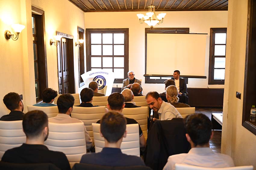 This week's guest of Uşak University's traditional “Hasbihal at the Mansion” event was Industrialist and Chairman of the Board of Trustees of Uşak Quality Promotion and Vocational Education Foundation Ramazan Çakın. During the event, while students asked what they wondered about the business world, Çakın shared his career journey and experiences.
